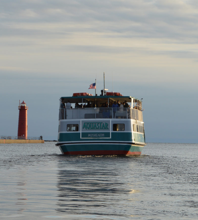 All Aboard! The Aquastar cruises Muskegon Lake and Lake Michigan. Don't miss the boat!