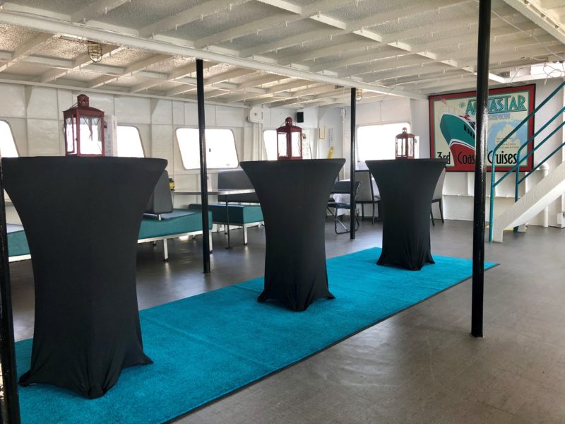 The Aquastar is a 61-foot, Coast Guard-inspected vessel featuring two spacious decks, onboard restrooms, a full-service bar, a dance floor, and a state-of-the-art sound system. All Aquastar captains are Coast Guard-certified to operate 100-ton vessels, ensuring a safe and professional experience for every guest. The boat’s vibrant color scheme is inspired by the iconic SS Aquarama, once the largest passenger ferry on the Great Lakes, giving the Aquastar a nostalgic nod to maritime history. Cruising the scenic waters of Muskegon Lake and Lake Michigan, the Aquastar offers both private charters and public cruises, including a variety of themed and specialty events throughout the sailing season. Drawing further inspiration from vessels like the SS Milwaukee Clipper, the Aquastar blends historical charm with modern amenities. Ongoing renovations aim to honor Muskegon’s rich maritime heritage while creating memorable experiences for all who come aboard. Check out our calendar for the latest cruise schedule—we can’t wait to welcome you on board!